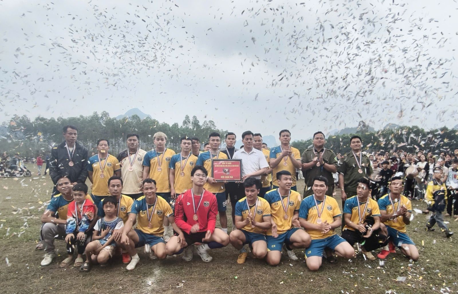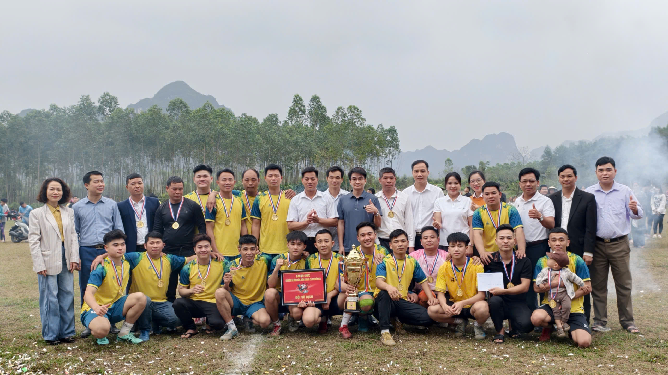 Trong trận chung kết đầy kịch tính, sau khi hai đội thi đấu ngang tài ngang sức, đội bóng thôn Chục Quan đã giành chiến thắng trong loạt sút luân lưu penalty, chính thức lên ngôi vô địch Giải bóng đá nam mừng Đảng, mừng Xuân Bính Ngọ xã Cai Kinh năm 2026. 🏆. Đội bóng các thôn Đồng Ngầu, Loi lần lượt giành hạng hai và hạng ba của giải đấu.