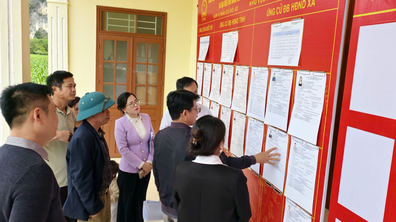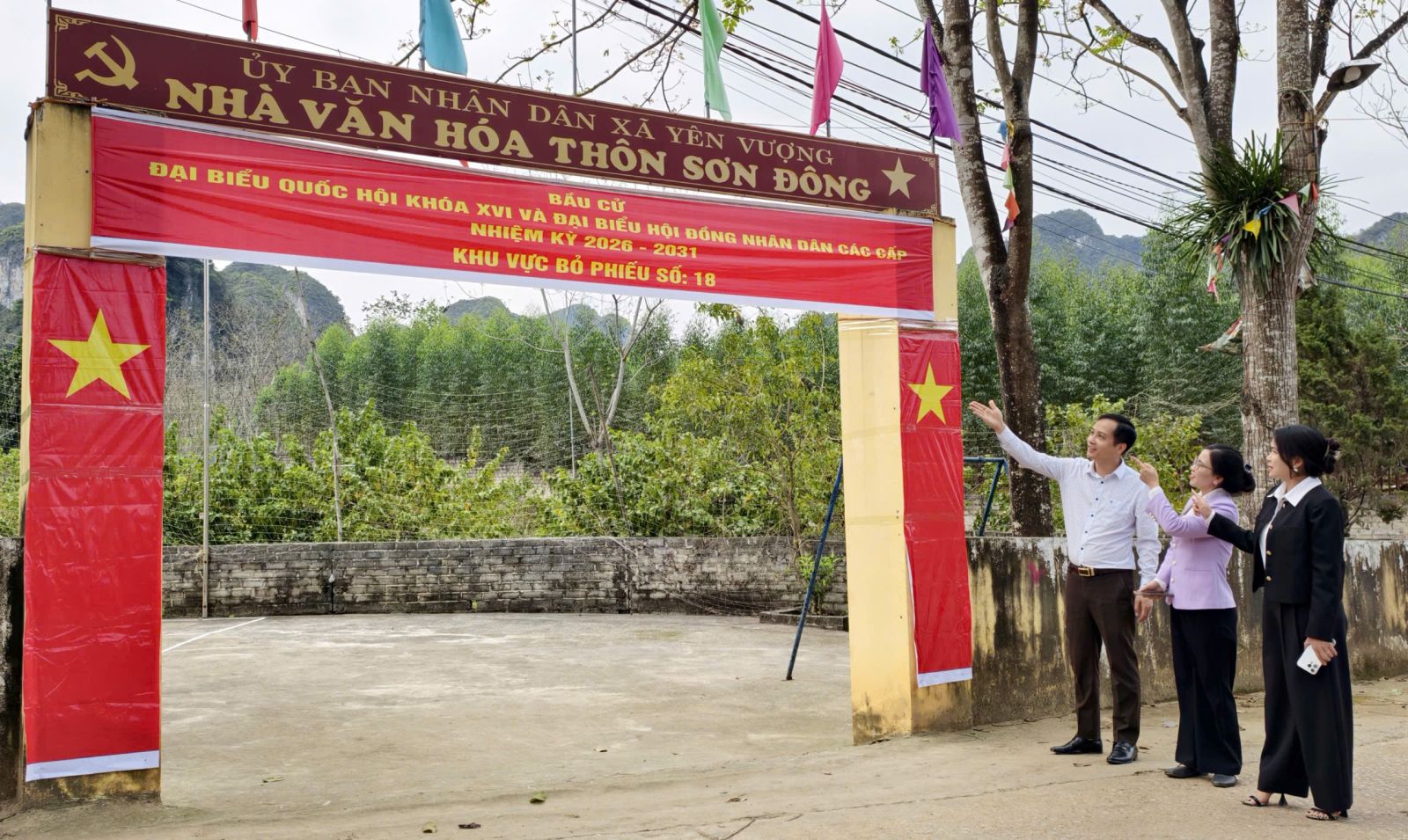 Đoàn công tác đã đến kiểm tra trực tiếp các điểm bầu cử đặt tại Nhà văn hóa các thôn như: Bãi Danh, thôn Đằng, thôn Hạ, thôn Nong Thâm, thôn Sơn Đông, thôn Ao Sen, thôn Cây Hồng – Mỏ Tối, thôn Làng Lầm và thôn Chục Quan… Các nội dung kiểm tra gồm công tác trang trí khánh tiết; niêm yết danh sách cử tri, niêm yết danh sách và tiểu sử tóm tắt những người ứng cử Đại biểu Quốc hội khoá XVI và Đại biểu HĐND các cấp nhiệm kỳ 2026 - 2031; bố trí cơ sở hạ tầng, trang thiết bị phục vụ bầu cử; đồng thời, rà soát các điều kiện bảo đảm an ninh trật tự, vệ sinh môi trường và công tác hậu cần theo đúng quy định.