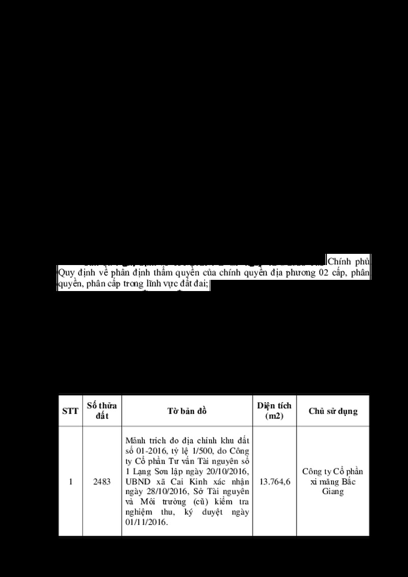 | Tiêu đề văn bản | Thông báo thu hồi đất do chấm dứt hoạt động của dự án đầu tư của Công ty cổ phần xi măng Bắc Giang | ||