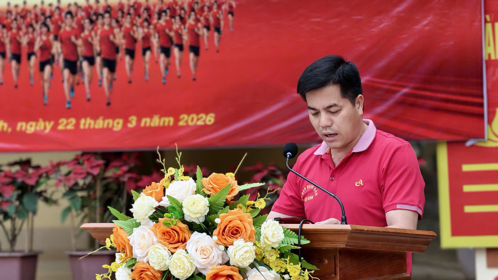 Đồng chí Linh Văn Điệp, Phó Chủ tịch UBND xã phát biểu khai mạc ngày chạy