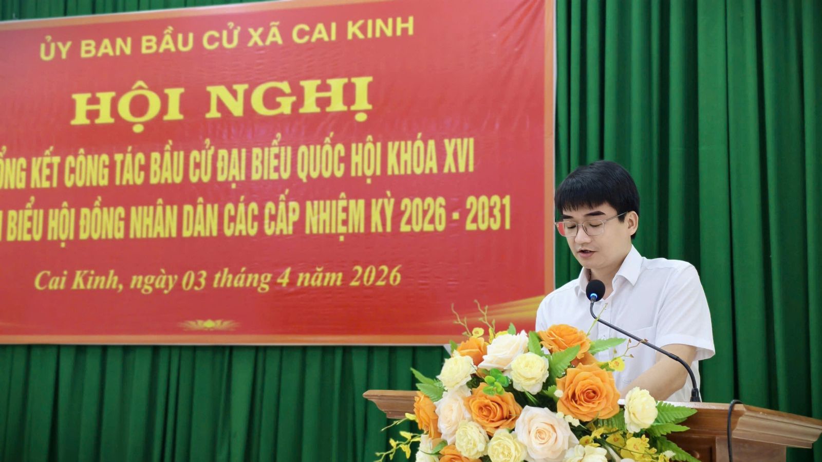 Ngày 03/4, Ủy ban bầu cử xã Cai Kinh tổ chức hội nghị tổng kết công tác bầu cử Đại biểu Quốc hội khóa XVI và Đại biểu HĐND các cấp nhiệm kỳ 2026 – 2031. Dự hội nghị có các đồng chí lãnh đạo Đảng ủy, HĐND, UBND, Ủy ban MTTQ Việt Nam xã, các tập thể và cá nhân được khen thưởng.