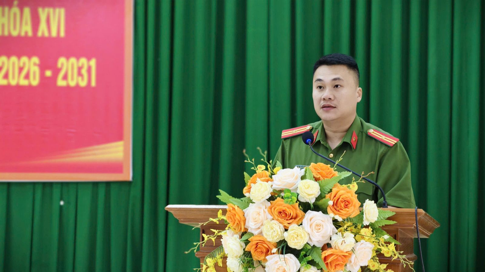 Đại diện lãnh đạo Công an xã phát biểu tham luận tại hội nghị