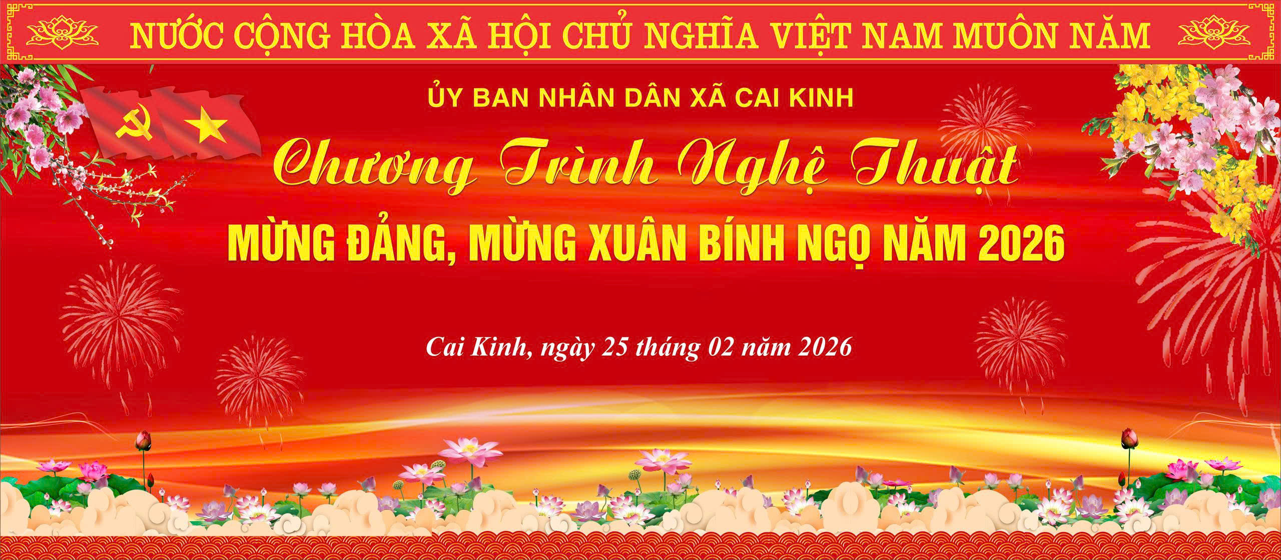 Tối ngày 25/02/2026 (tức tối mùng 9 Tết Bính Ngọ), tại Sân UBND xã Cai Kinh sẽ diễn ra Chương trình văn nghệ “Mừng Đảng – Mừng Xuân Bính Ngọ 2026” do UBND xã Cai Kinh tổ chức.