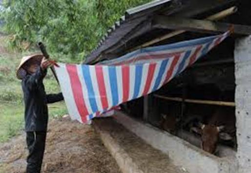 Ảnh: Dùng bạt quây che chắn chuồng trại để giữ ấm cho đàn vật nuôi