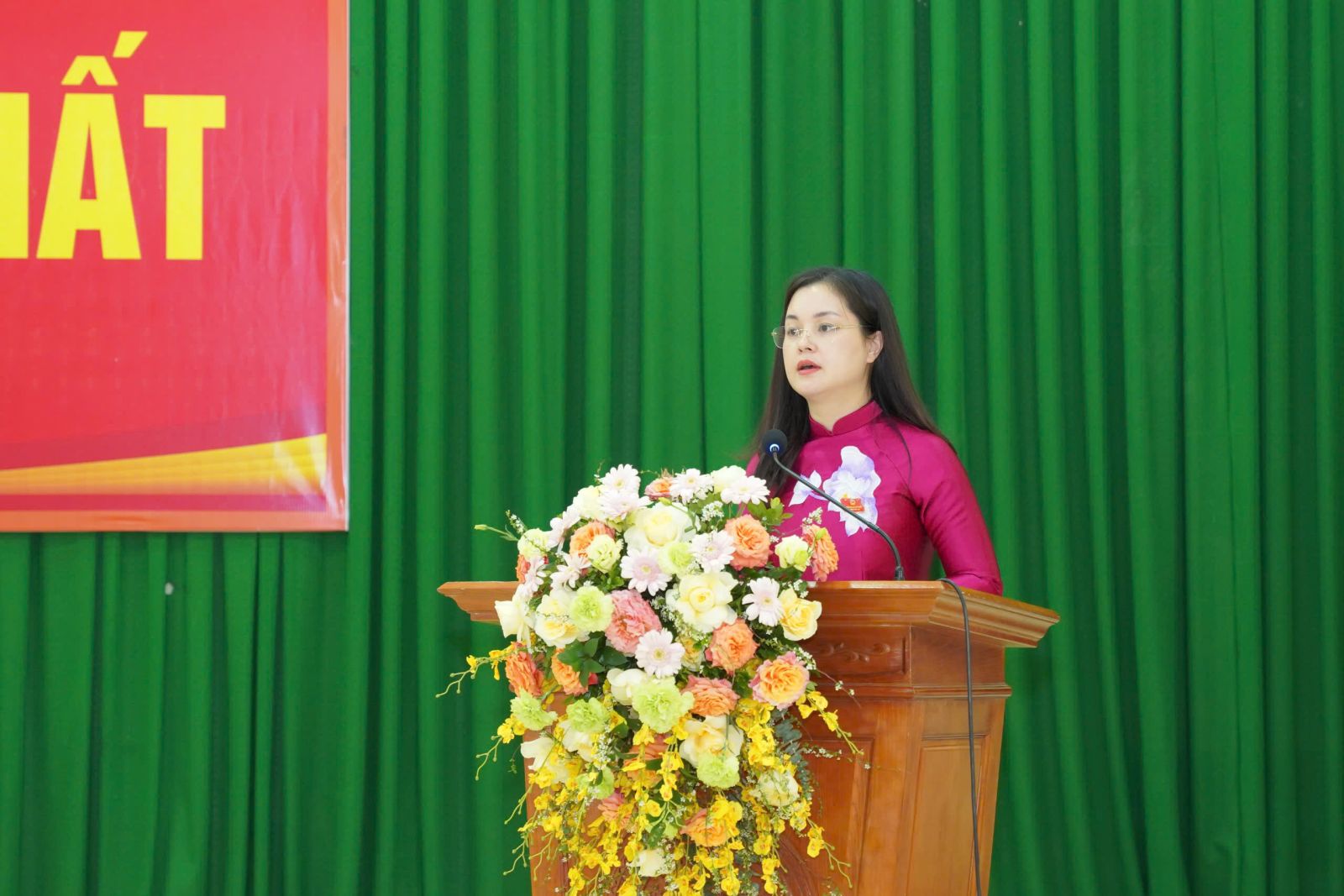 Đồng chí Đinh Thị Anh Thư, Bí thư Đảng uỷ xã phát biểu tại kỳ họp