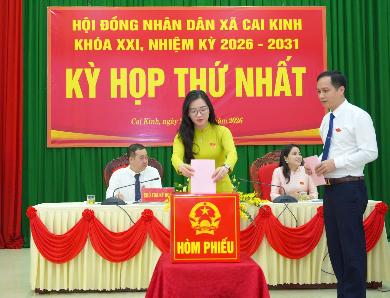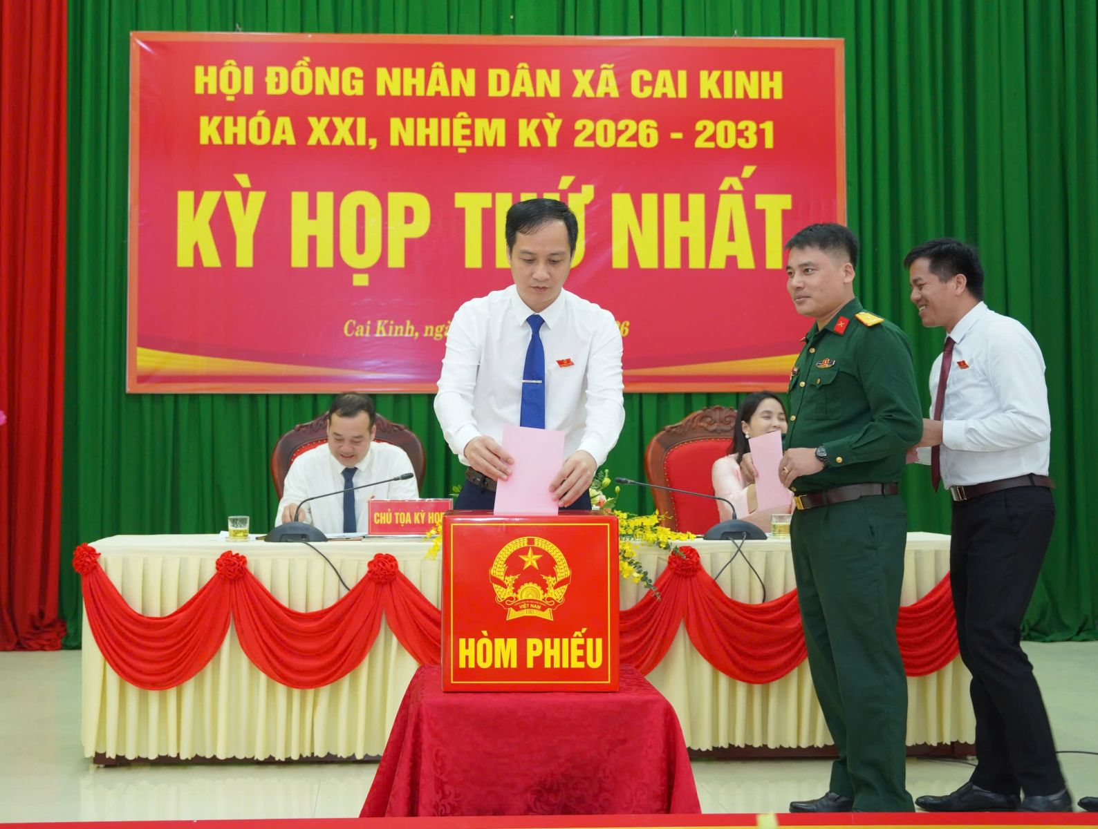 Với tinh thần dân chủ, khách quan, trách nhiệm, HĐND xã Cai Kinh đã tiến hành bỏ phiếu kín bầu các chức danh Chủ tịch, Phó Chủ tịch HĐND và Trưởng các Ban của HĐND xã; bầu Chủ tịch, các Phó Chủ tịch UBND và các Ủy viên UBND xã nhiệm kỳ 2026 – 2031./.