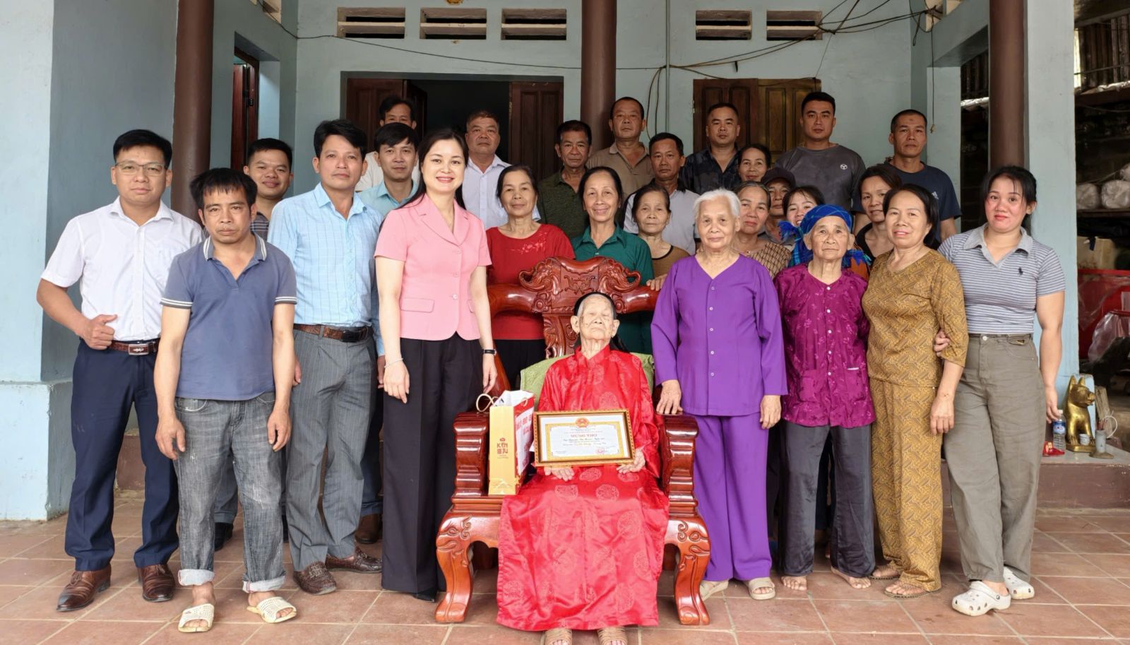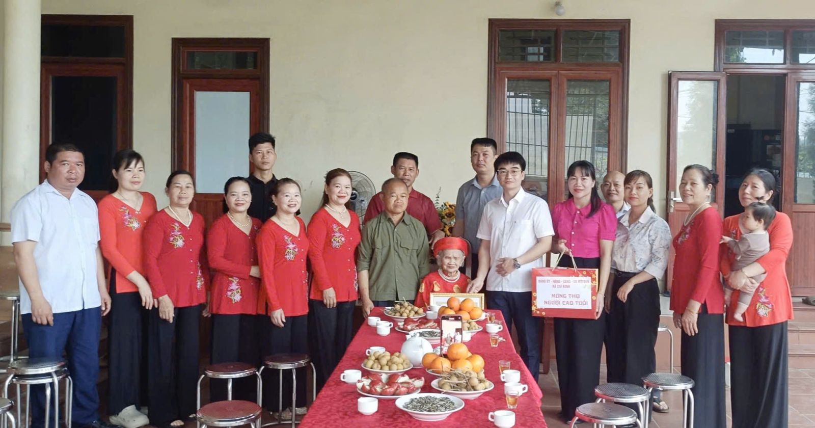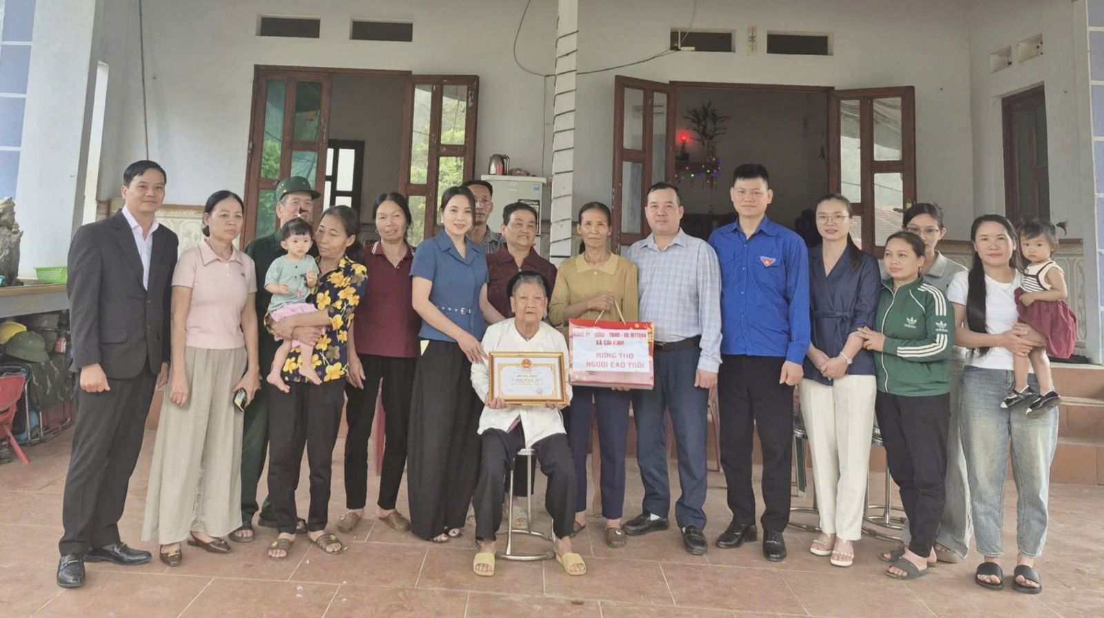 Đoàn đã đến thăm, chúc thọ cụ Nguyễn Thị Hoàn (sinh năm 1924), thôn Làng Lầm, thọ 102 tuổi; cụ Nguyễn Thị Lụa (sinh năm 1931), thôn Bãi Danh; cụ Nguyễn Thị Xuân (sinh năm 1931), thôn Nong Thâm và cụ Lý Thị Bé (sinh năm 1931), thôn Ba Nàng, cùng thọ 95 tuổi.