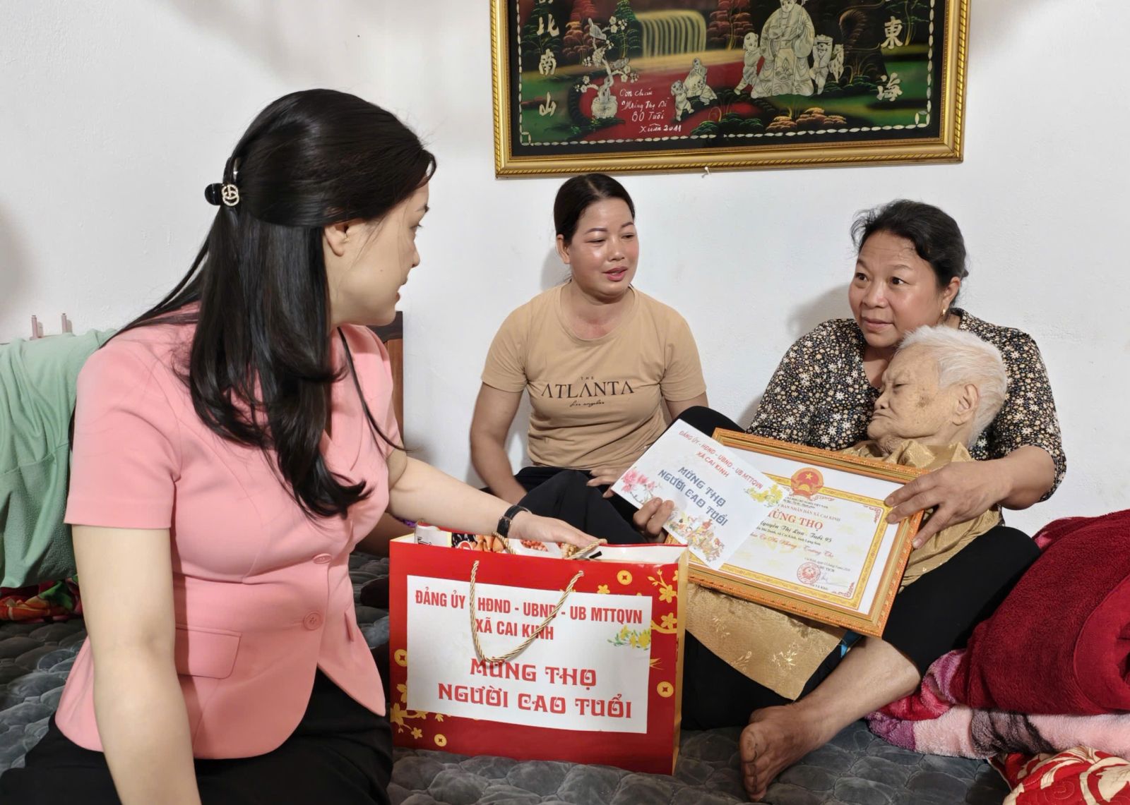 Lãnh đạo xã Cai Kinh thăm, chúc thọ người cao tuổi thọ 95 và trên 100 tuổi