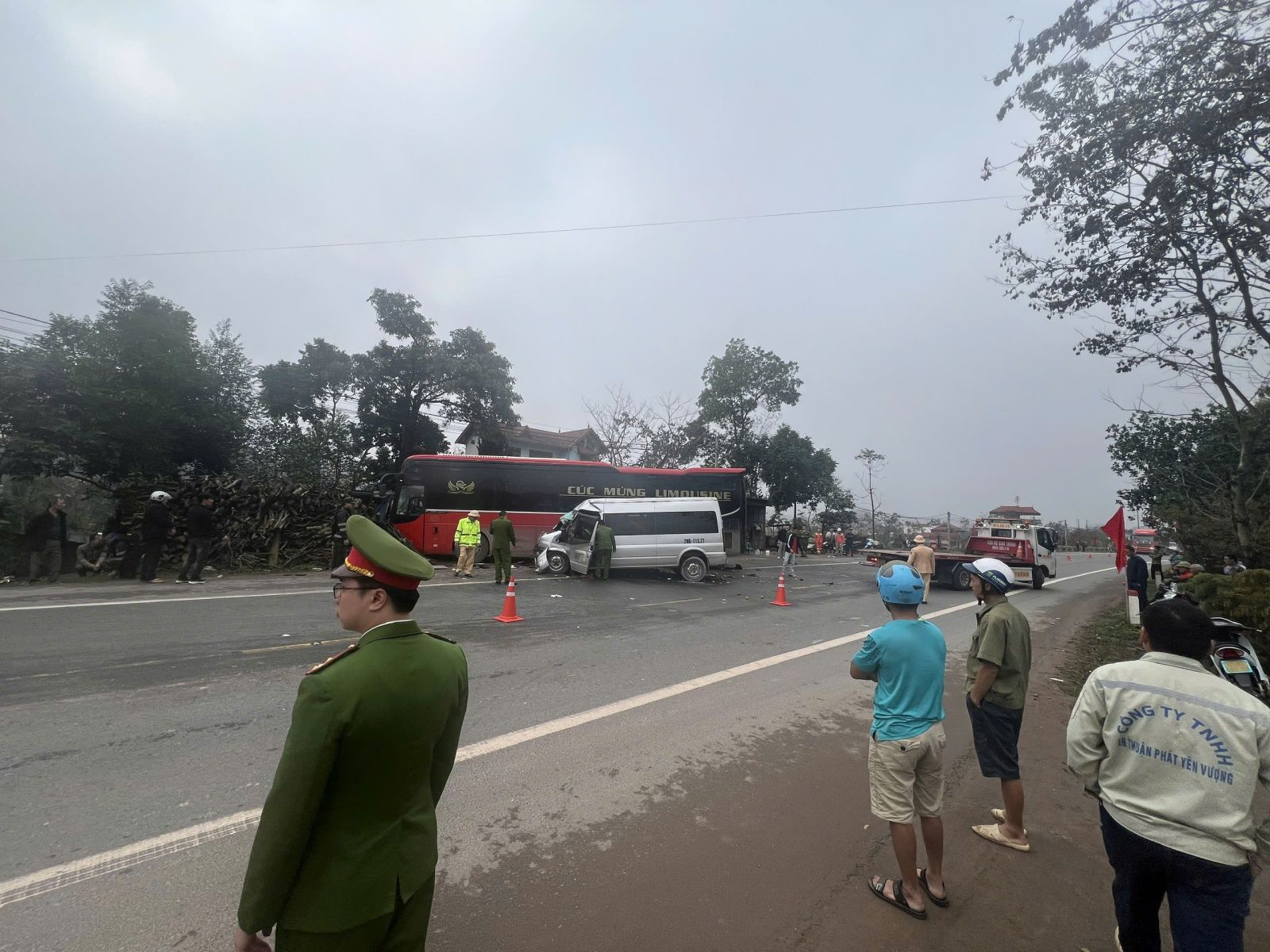 Vụ tai nạn nghiêm trọng xảy ra giữa 02 ô tô trở khách trên địa bàn thôn Đồng Ngầu, xã Cai Kinh