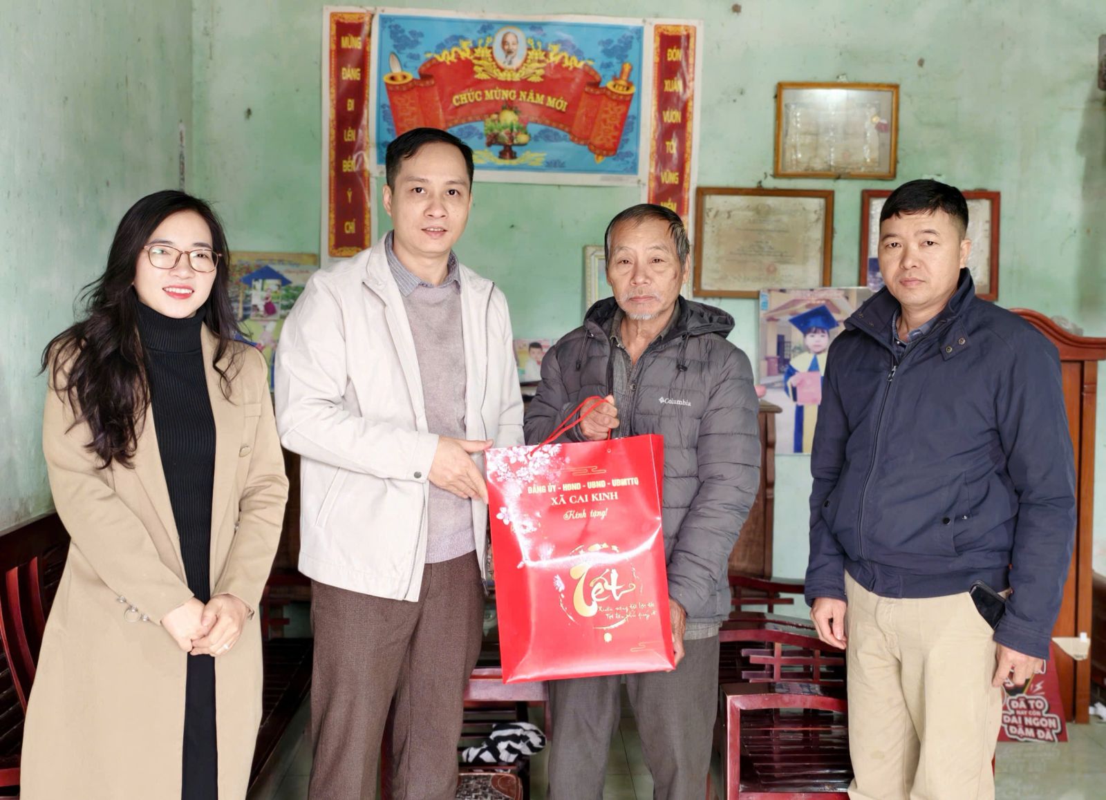 Ngày 10/2, đoàn thăm, tặng quà tết của xã Cai Kinh do đồng chí Nguyễn Quốc Toản, Ủy viên Ban Thường vụ Đảng ủy, Chủ nhiệm Ủy ban Kiểm tra Đảng ủy làm trưởng đoàn đã đến thăm hỏi, chúc Tết và tặng quà các gia đình người có công với cách mạng và các đồng chí nguyên lãnh đạo xã qua các thời kỳ. Tham gia cùng đoàn có đồng chí Nông Thị Huyền Trang, Ủy viên Ban Thường vụ Đảng ủy, Phó Chủ tịch UBND xã.
