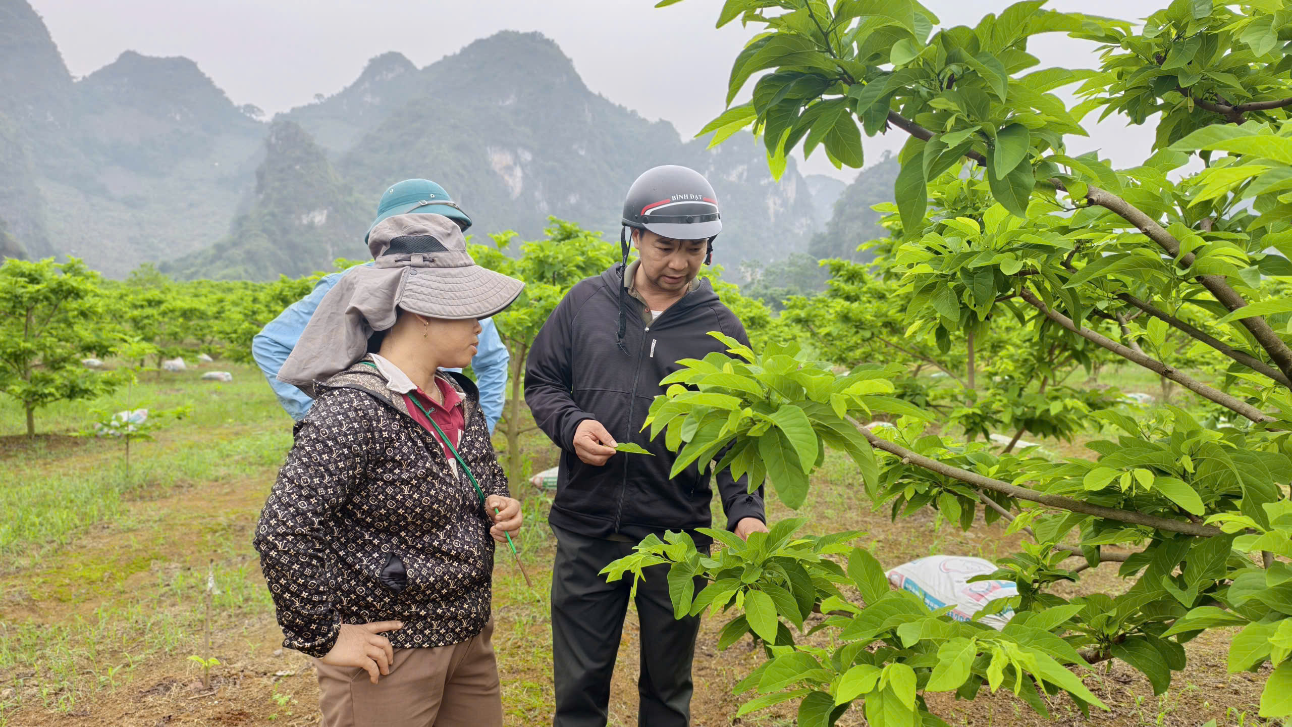 Tại đây, cán bộ kỹ thuật đã trực tiếp kiểm tra tình hình phát triển của cây, đồng thời hướng dẫn các hộ dân cách phòng trừ sâu bệnh trong giai đoạn cây ra hoa, thụ phấn; lưu ý kỹ thuật chăm sóc, bón phân, tỉa cành nhằm nâng cao năng suất, chất lượng.