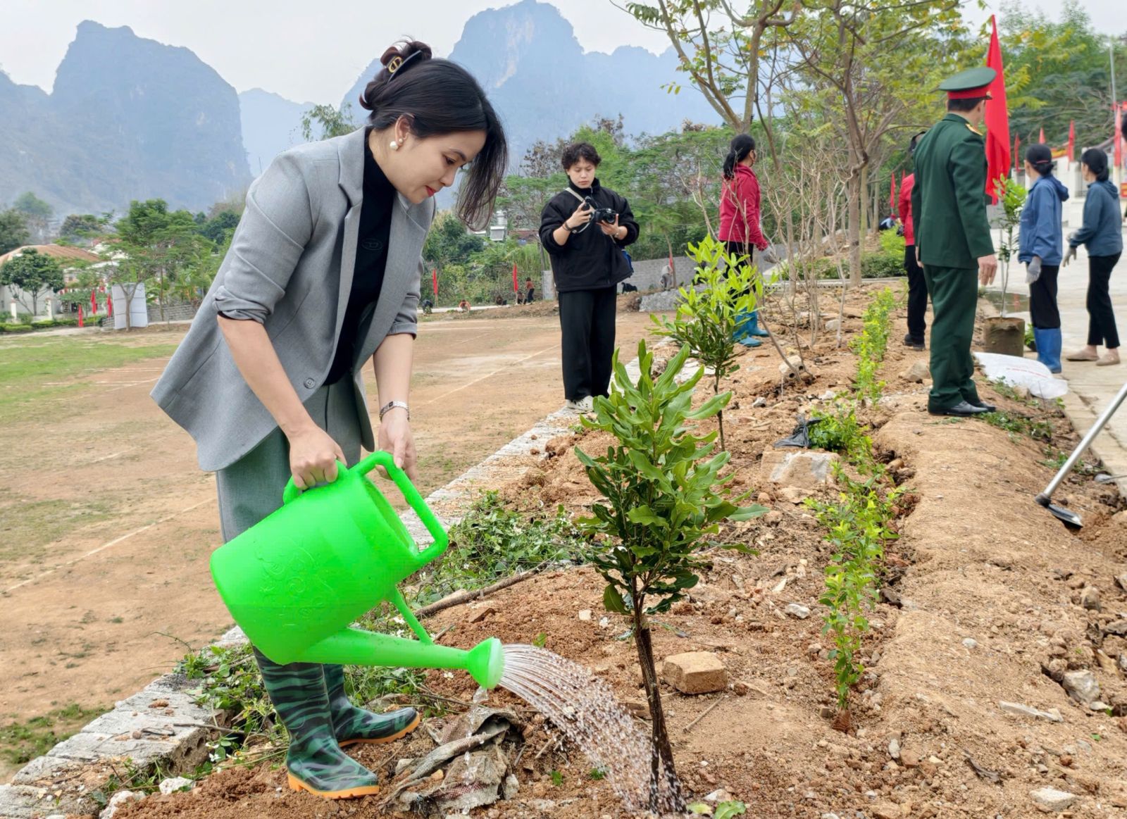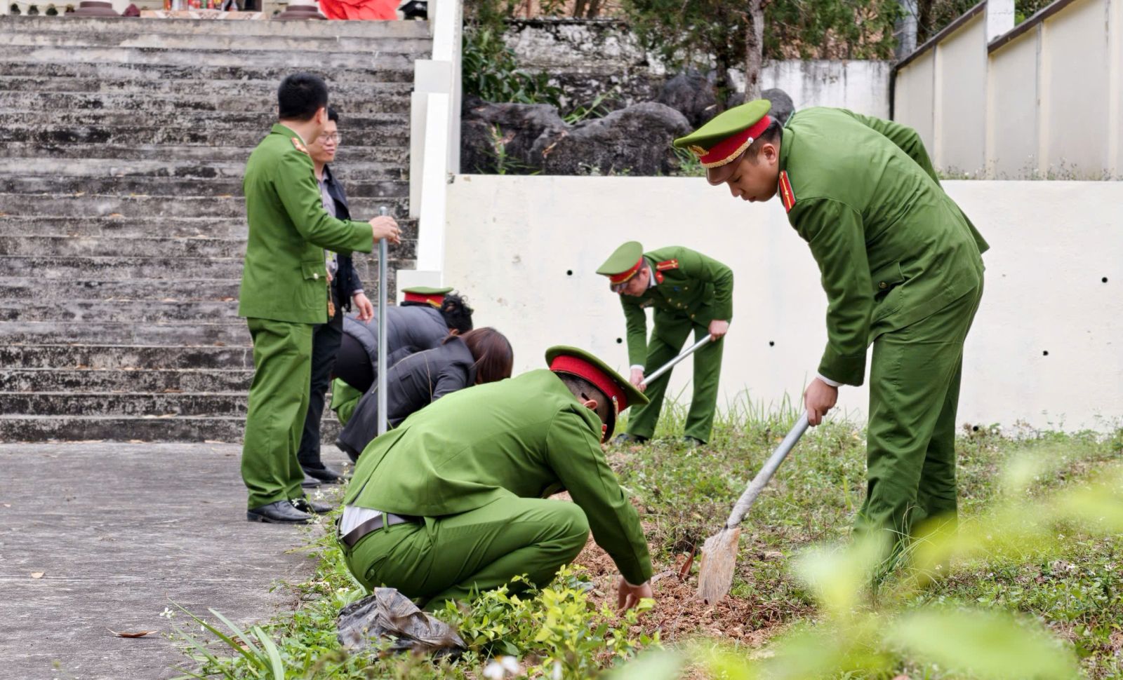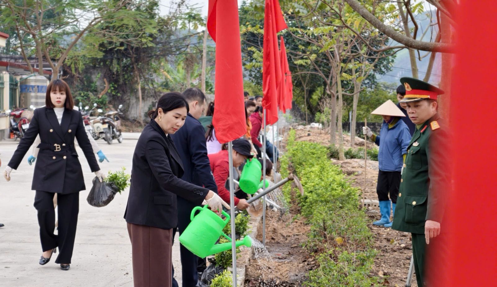 Các đại biểu ra quân trồng cây tại lễ ra quân đầu xuân