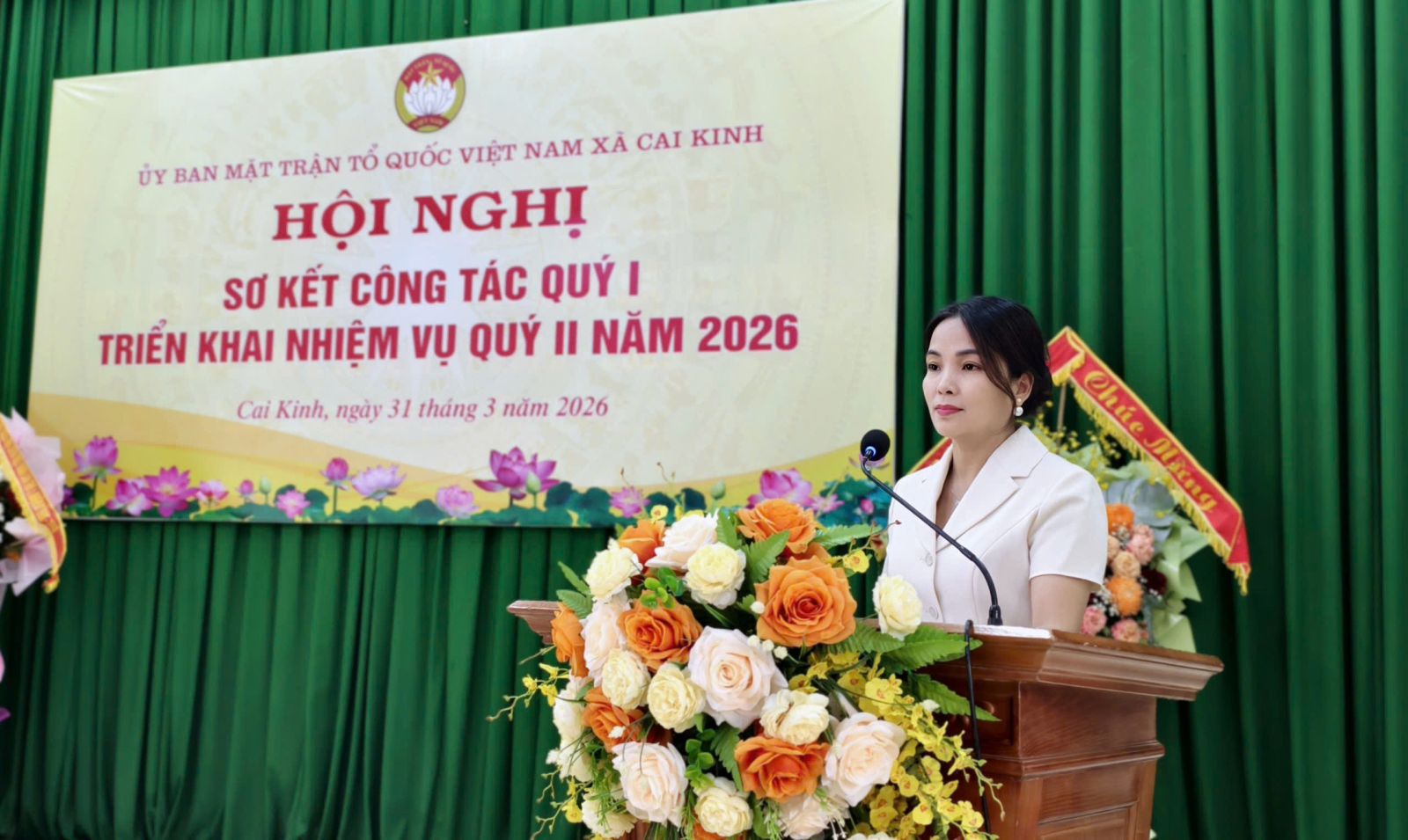 Sáng ngày 31/3, Ủy ban MTTQ Việt Nam xã Cai Kinh tổ chức Hội nghị sơ kết công tác quý I, triển khai nhiệm vụ quý II năm 2026. Dự và phát biểu chỉ đạo tại hội nghị có đồng chí Phạm Ngọc Thủy, Phó Bí thư Thường trực Đảng ủy xã.