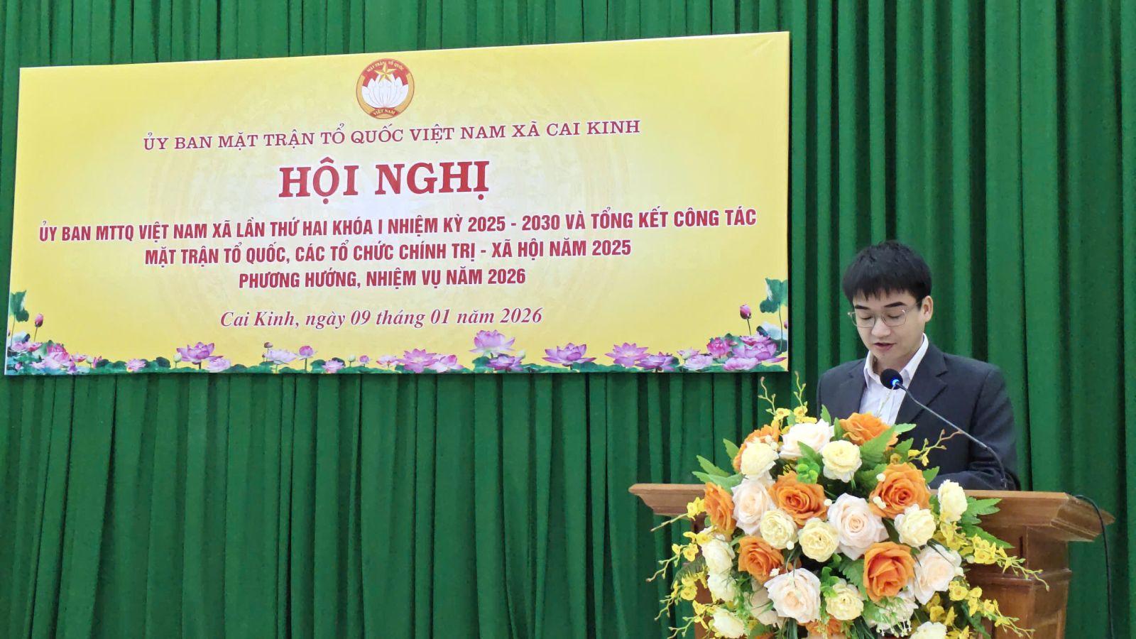 Sáng ngày 09/01/2026, Ủy ban MTTQ Việt Nam xã Cai Kinh tổ chức hội nghị lần thứ hai khoá I, nhiệm kỳ 2025-2030, để tổng kết công tác Mặt trận và các tổ chức chính trị - xã hội năm 2025, triển khai nhiệm vụ trọng tâm năm 2026. Dự phát biểu chỉ đạo có đồng chí Phạm Ngọc Thủy, Phó Bí thư Thường trực Đảng ủy, Chủ tịch HĐND xã.