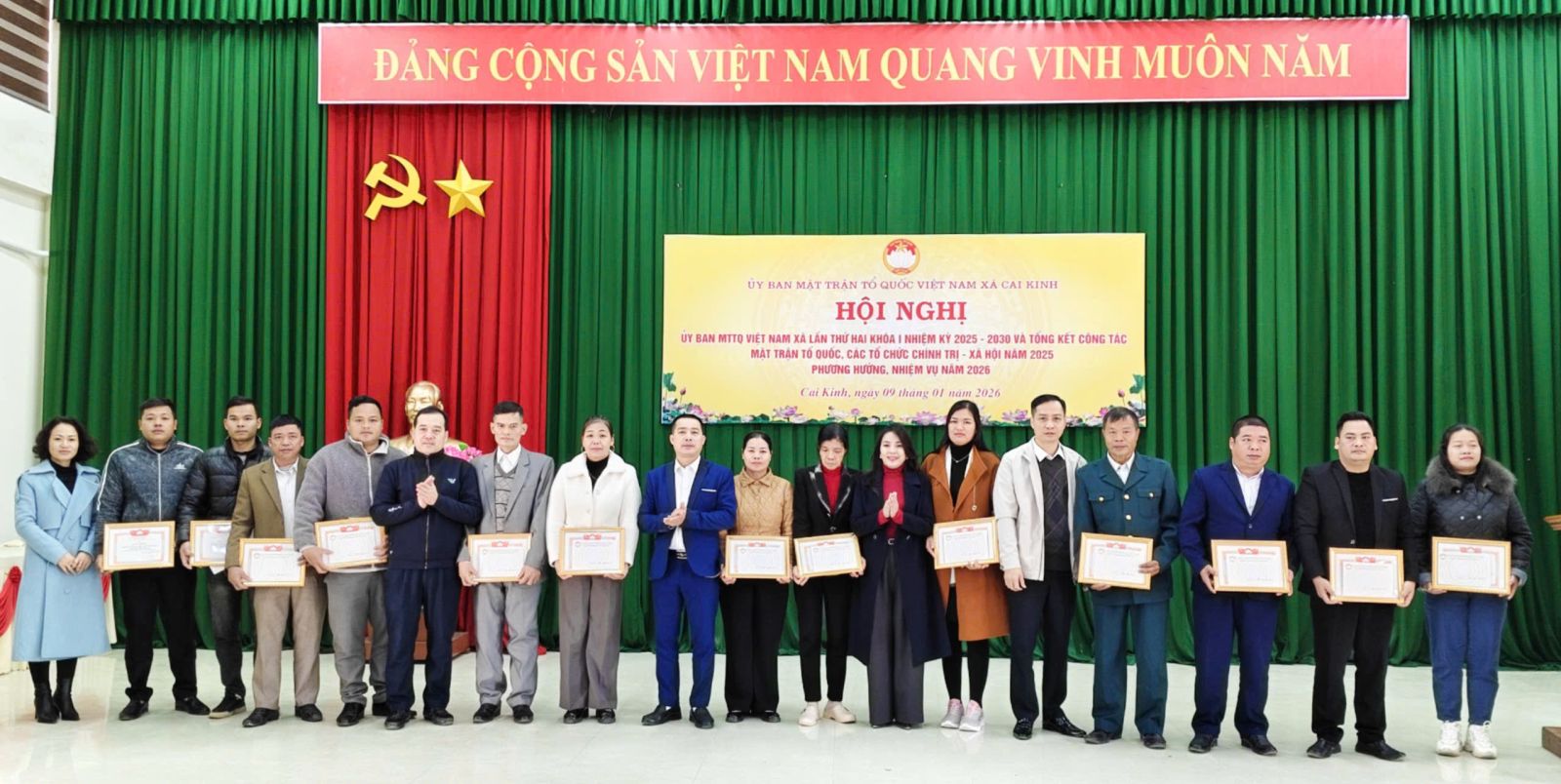 Tại Hội nghị 15 tập thể và 17 cá nhân được Uỷ ban MTTQ Việt Nam xã Cai Kinh tặng giấy khen vì đã có thành tích xuất sắc trong công tác Mặt trận năm 2025.