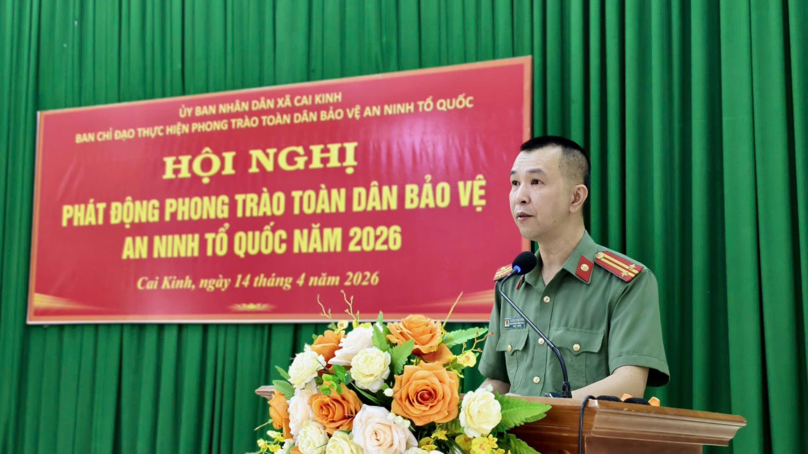 Ngày 14/4, tại Nhà văn hóa xã Cai Kinh, UBND xã, Ban Chỉ đạo thực hiện phong trào Toàn dân bảo vệ an ninh Tổ quốc xã, tổ chức Hội nghị phát động phong trào “Toàn dân bảo vệ an ninh Tổ quốc” năm 2026. Dự và phát biểu chỉ đạo có đồng chí Nông Thị Huyền Trang, Ủy viên BTV Đảng ủy, Phó Chủ tịch UBND xã.