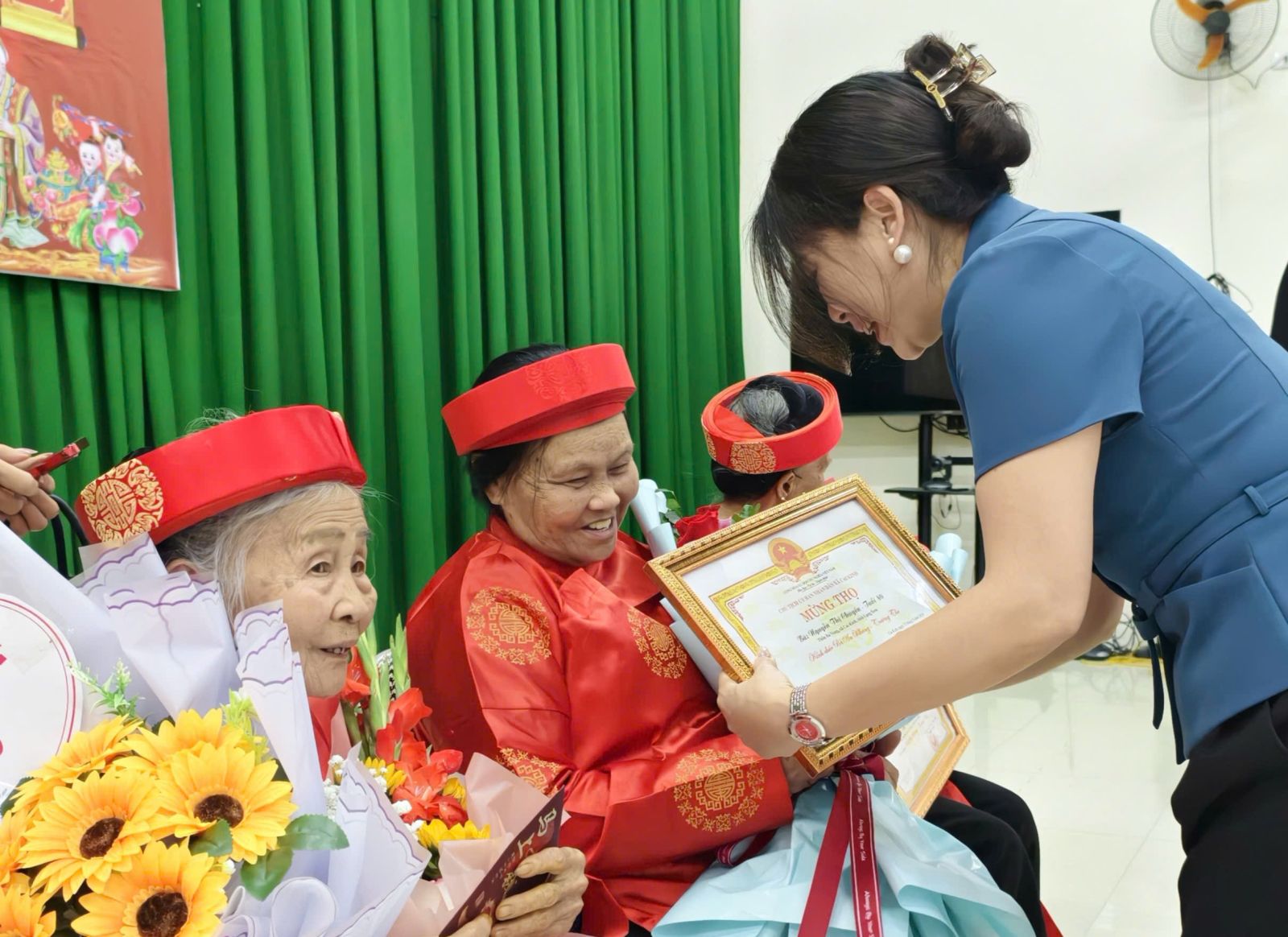 Dự buổi lễ có các đồng chí lãnh đạo Đảng ủy, HĐND, UBND, Ủy ban MTTQ Việt Nam xã; đại diện các ban, ngành, đoàn thể cùng các cụ được mừng thọ và gia đình. Tại buổi lễ, lãnh đạo xã đã trao giấy chúc thọ và quà mừng thọ cho các cụ, đồng thời gửi lời chúc sức khỏe, mong các cụ luôn sống vui, sống khỏe, tiếp tục là tấm gương sáng cho con cháu noi theo, góp phần xây dựng quê hương ngày càng phát triển.