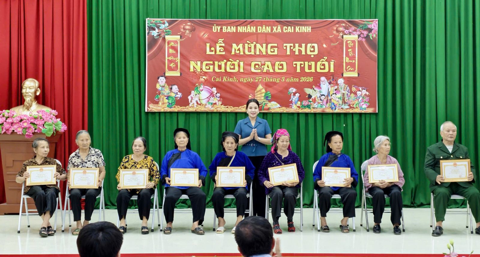 Chiều ngày 27/3, tại Nhà văn hóa xã Cai Kinh, UBND xã Cai Kinh tổ chức Lễ mừng thọ người cao tuổi thọ 70, 75, 80 và 85 tuổi trên địa bàn xã.