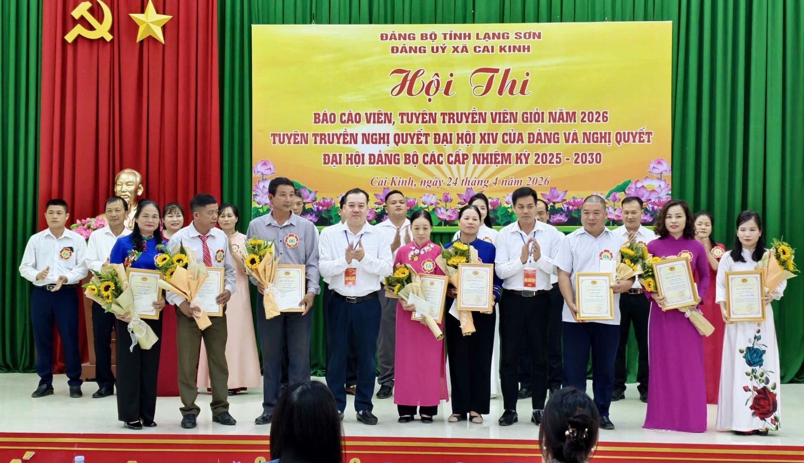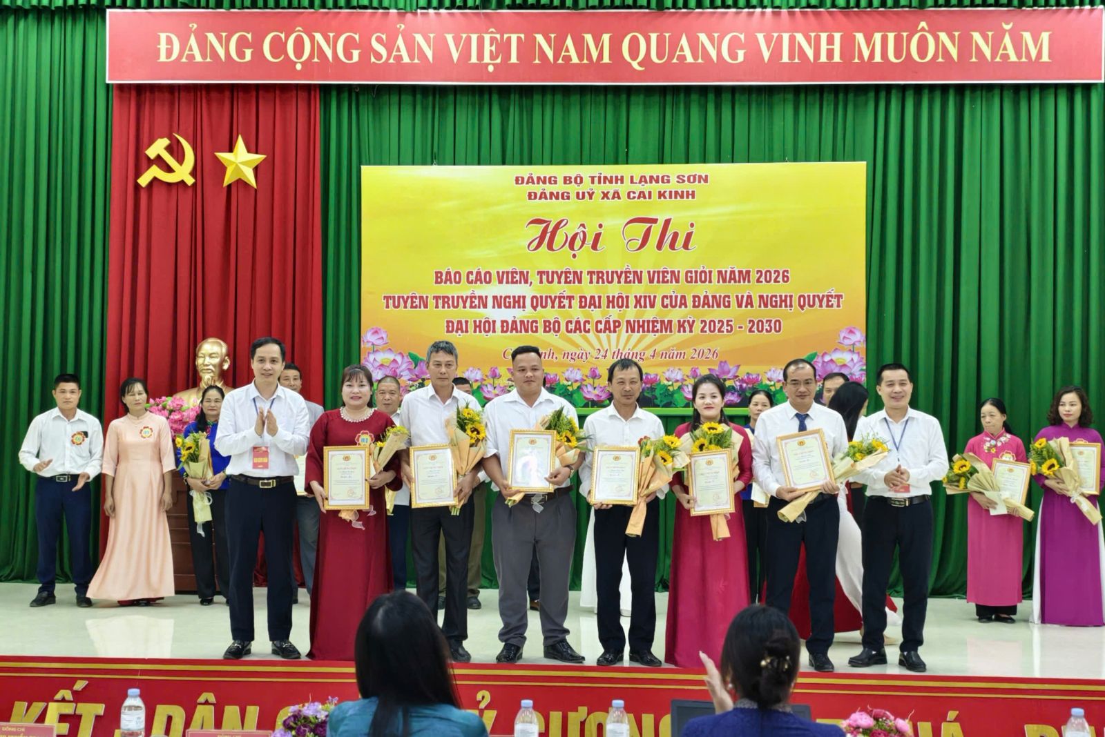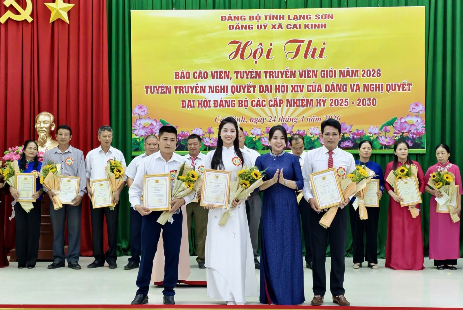 Sau thời gian 01 ngày làm việc nghiêm túc, khẩn trương và chất lượng, chiều ngày 24/4/2026, Hội thi Báo cáo viên, Tuyên truyền viên giỏi xã Cai Kinh năm 2026 đã hoàn thành toàn bộ nội dung chương trình và tiến hành bế mạc, trao giải.