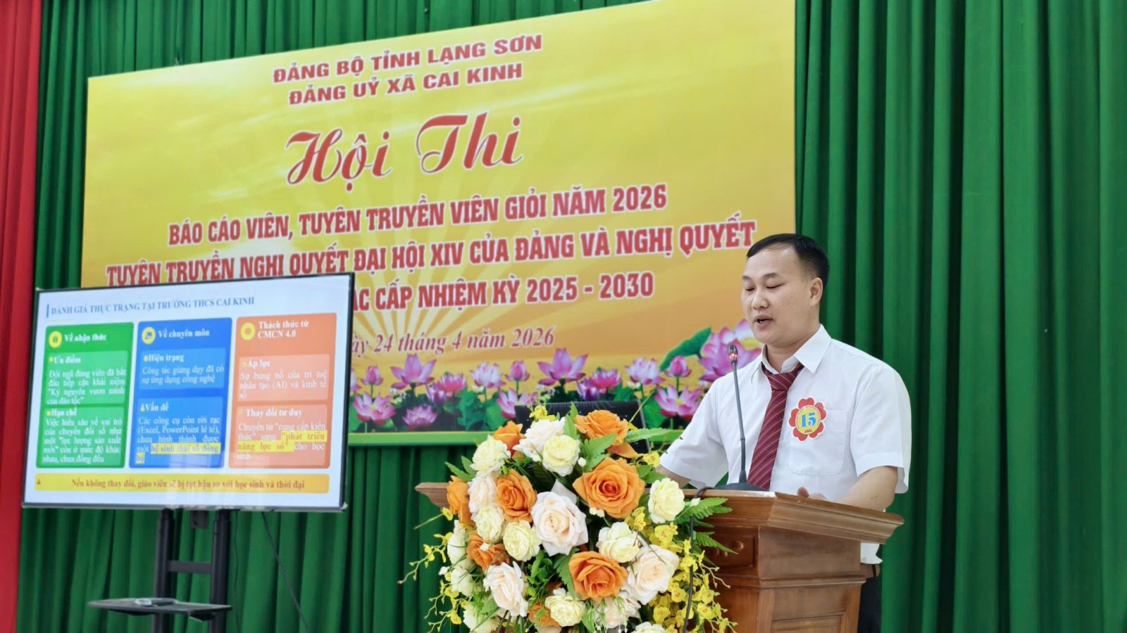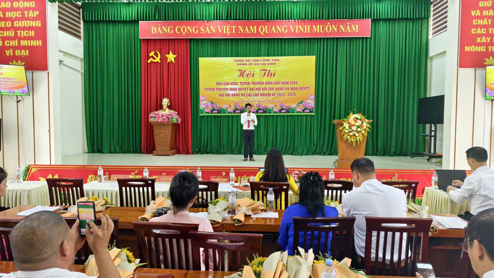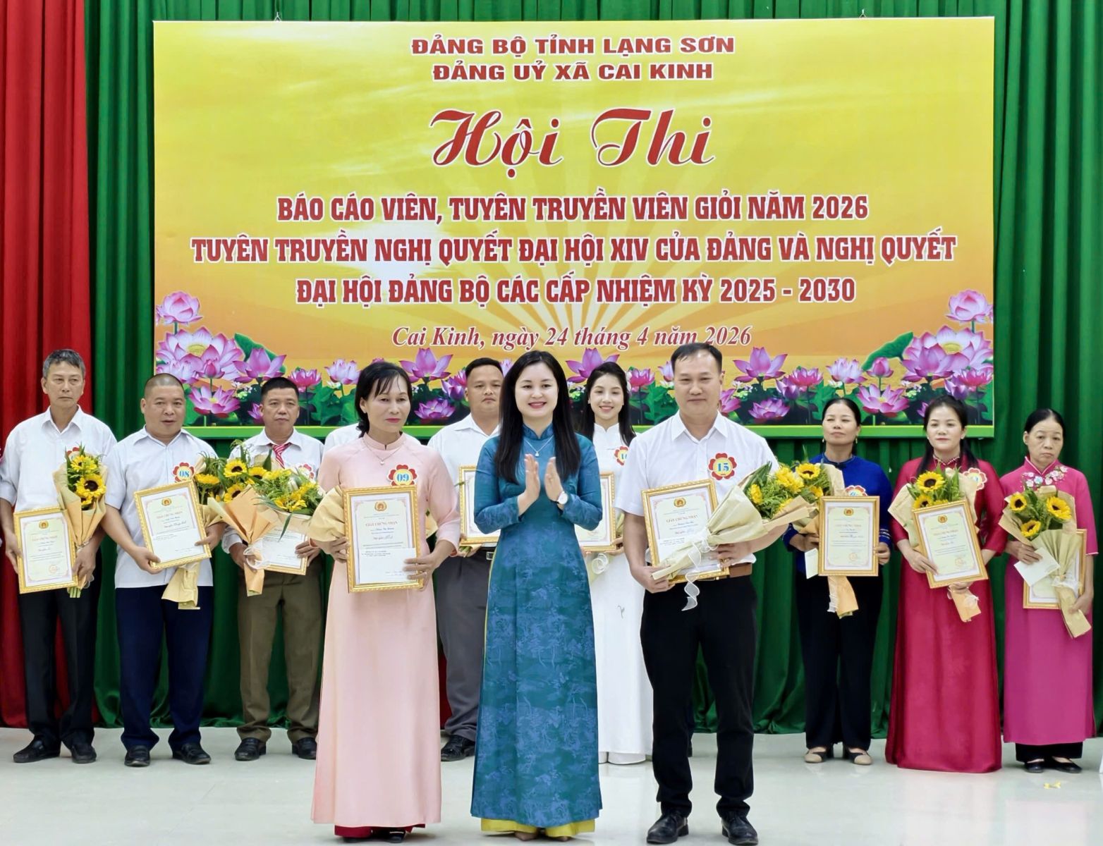 Sau thời gian 01 ngày làm việc nghiêm túc, khẩn trương và chất lượng, chiều ngày 24/4/2026, Hội thi Báo cáo viên, Tuyên truyền viên giỏi xã Cai Kinh năm 2026 đã hoàn thành toàn bộ nội dung chương trình và tiến hành bế mạc, trao giải.