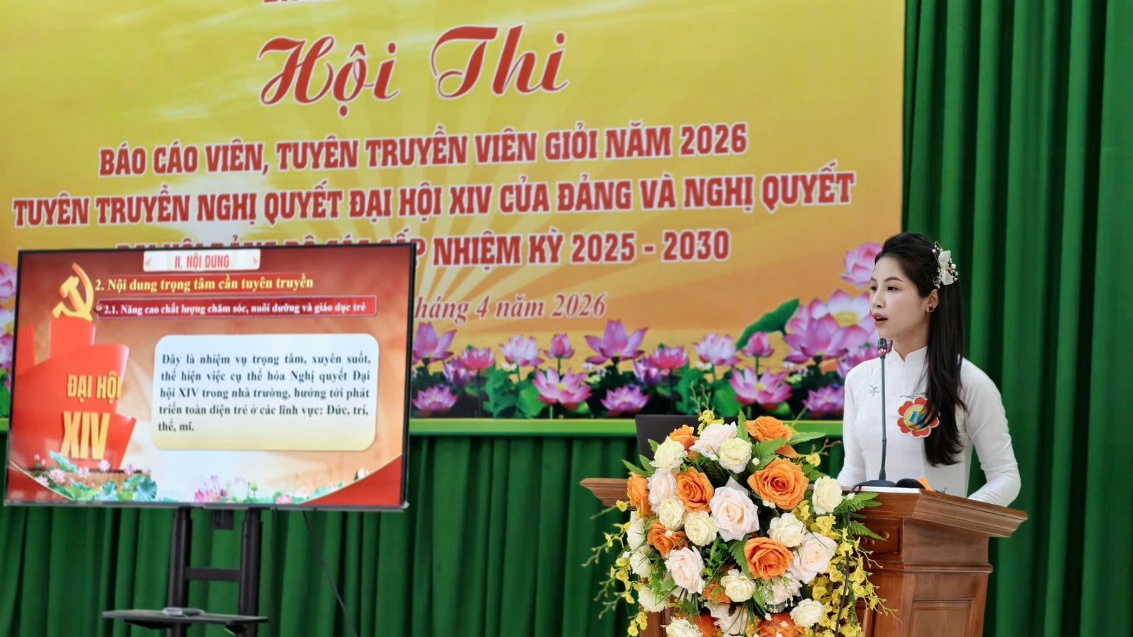 Hội thi năm nay có sự tham gia của 19 thí sinh là những báo cáo viên, tuyên truyền viên cơ sở tiêu biểu, đại diện cho các chi bộ, cơ quan, đơn vị trên địa bàn xã. Các thí sinh đã thể hiện tinh thần trách nhiệm cao, sự chuẩn bị công phu, mang đến nhiều phần thi chất lượng, nội dung phong phú, gắn lý luận với thực tiễn địa phương.