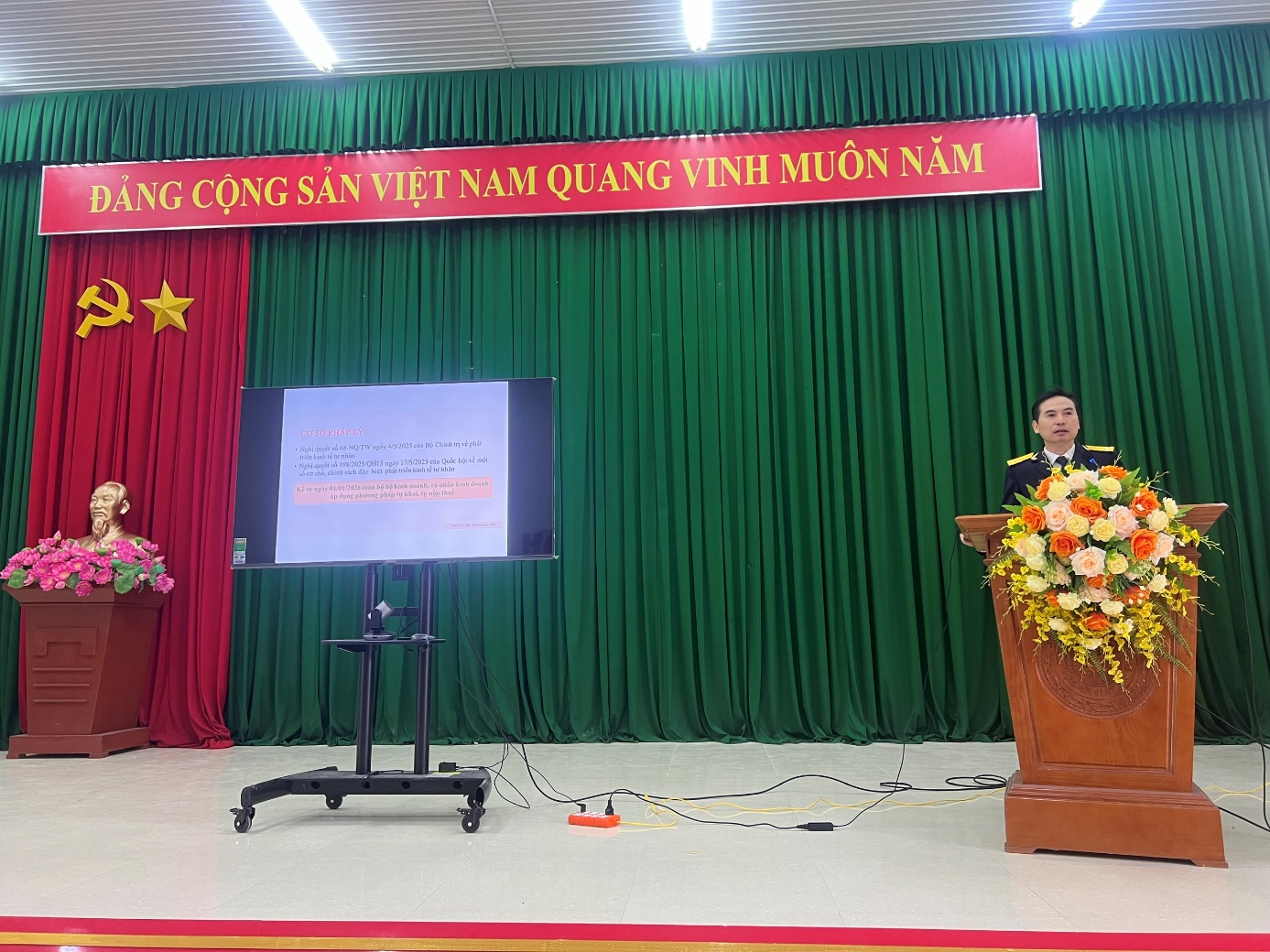 Sáng ngày 26/12/2025, tại Hội trường Nhà văn hoá xã Cai Kinh, UBND xã Cai Kinh phối hợp với Thuế Cơ sở 1 tỉnh Lạng Sơn tổ chức Hội nghị Triển khai công tác chuyển đổi mô hình, phương pháp quản lý thuế đối với hộ, cá nhân kinh doanh khi xoá bỏ thuế khoán. Tham dự Hội nghị có đại diện Thuế cơ sở 1 tỉnh Lạng Sơn; Lãnh đạo UBND xã Cai Kinh; đại diện lãnh đạo UB MTTQ Việt Nam xã Cai Kinh; Lãnh đạo, chuyên viên phụ trách Phòng Kinh tế xã; Đại diện Phòng Văn hoá – Xã hội xã; Các các hộ, cá nhân kinh doanh trên địa bàn xã Cai Kinh.