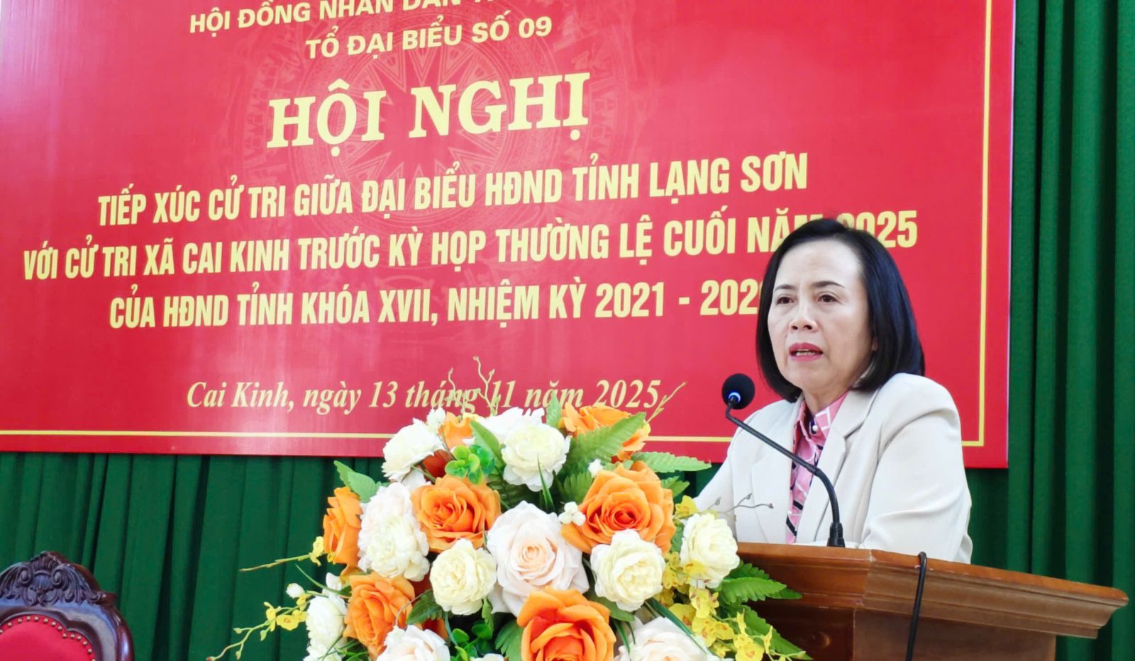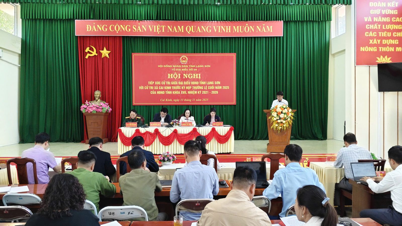 Ngày 13/11, tại xã Cai Kinh, tổ đại biểu số 09 HĐND tỉnh Lạng Sơn trúng cử tại khu vực Hữu Lũng, gồm các đồng chí: Đoàn Thị Hậu, Phó Bí thư Thường trực Tỉnh uỷ, Chủ tịch HĐND tỉnh; Vũ Hoàng Quý, Uỷ viên BTV, Chủ nhiệm UBKT Tỉnh uỷ; Lương Đình Nhạc, Phó chính uỷ Bộ chỉ huy quân sự tỉnh Lạng Sơn; Đinh Thị Anh Thư, Bí thư Đảng uỷ xã Cai Kinh đã có buổi tiếp xúc với Cử tri trên địa bàn xã Cai Kinh trước kỳ họp thường lệ cuối năm 2025 của HĐND tỉnh Lạng Sơn khoá XVII, nhiệm kỳ 2021 – 2026.
