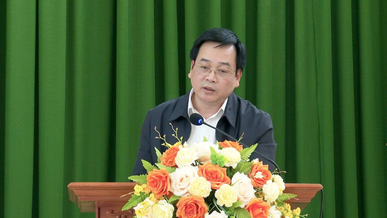 Đồng chí Vũ Hoàng Quý, Uỷ viên BTV, Chủ nhiệm UBKT Tỉnh uỷ phát biểu tại buổi tiếp xúc cử tri xã Cai Kinh