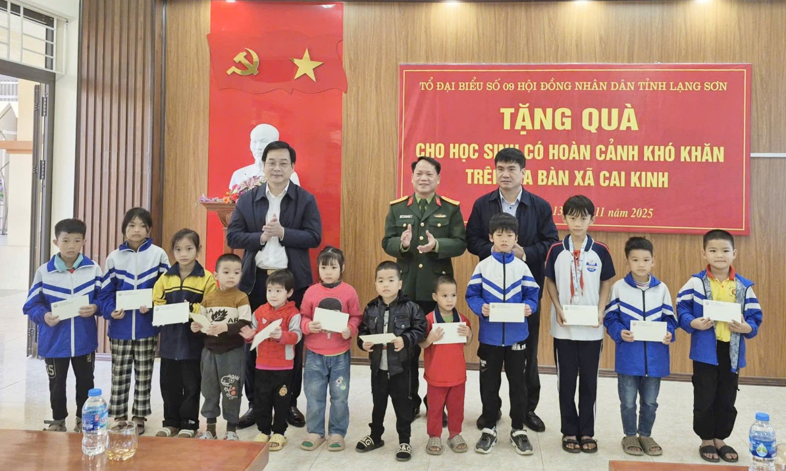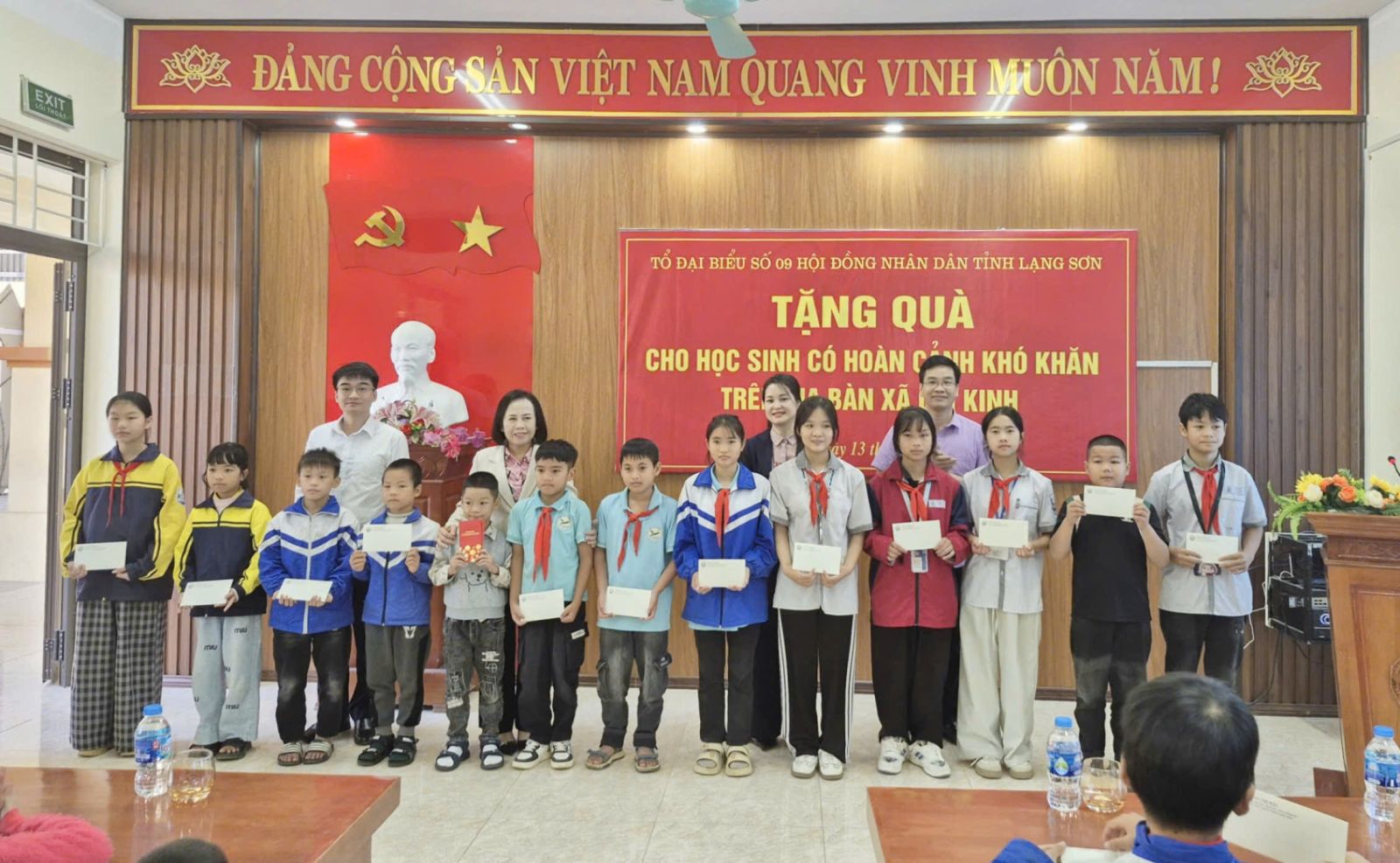 Trong chương trình các đồng chí tổ đại biểu số 09 HĐND tỉnh Lạng Sơn trúng cử tại khu vực Hữu Lũng đã thăm, tặng 23 phần quà ý nghĩa cho các em học sinh có hoàn cảnh khó khăn trên địa bàn xã Cai Kinh./.